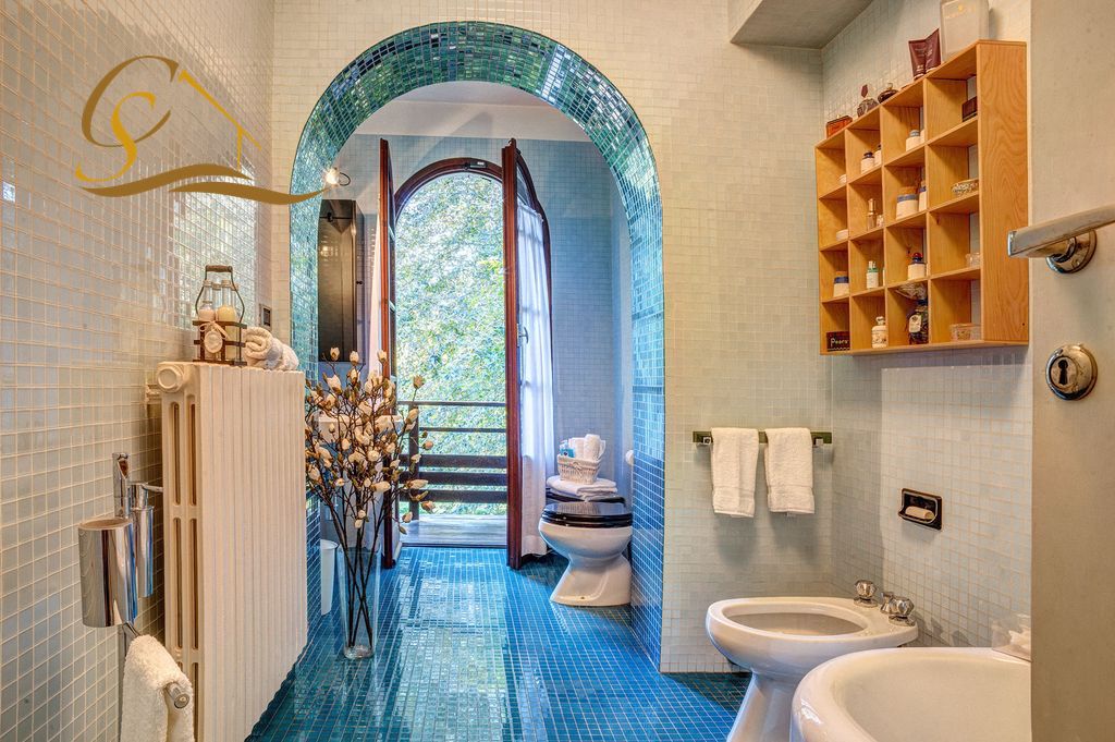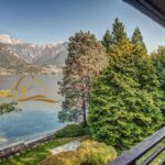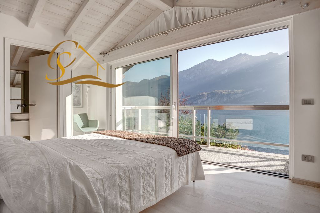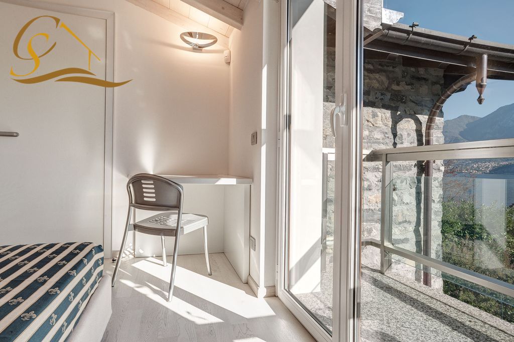 Das Erdgeschoss ist in den Wohn- und Schlafbereich aufgeteilt und wurde so gestaltet, dass es einen einzigartigen Blick auf den See und die Berge bietet. Das helle Wohnzimmer verfügt über ein großes Wohnzimmer, das sich zum Esszimmer öffnet und eine große Terrasse mit Blick auf den See überblickt, eine gut ausgestattete Küche und einen originalen Steinkamin; Der Schlafbereich verfügt über zwei schöne Schlafzimmer mit eigenem Bad. Im ersten Stock, verbunden durch eine majestätische Holztreppe, gelangen wir in den Flur, der als Verbindung zur Master-Master-Suite mit ihrer großen Terrasse mit Blick auf den See und ihrem privaten Badezimmer fungiert, das die Kraft hat, alle Gäste zu verzaubern. Die Badezimmer sind raffiniert und mit Jacuzzi und Bisazza-Mosaiken ausgestattet, drei weitere Doppelzimmer vervollständigen die Etage. Im Untergeschoss der Villa befinden sich 4 weitere Räume, einer als Taverne mit Holztischen, ein Kaminbereich und eine Ecke mit allen Angelgeräten, ein typisches Badezimmer, ein großer und schöner Weinkeller und ein Raum für den Service Mitarbeiter.