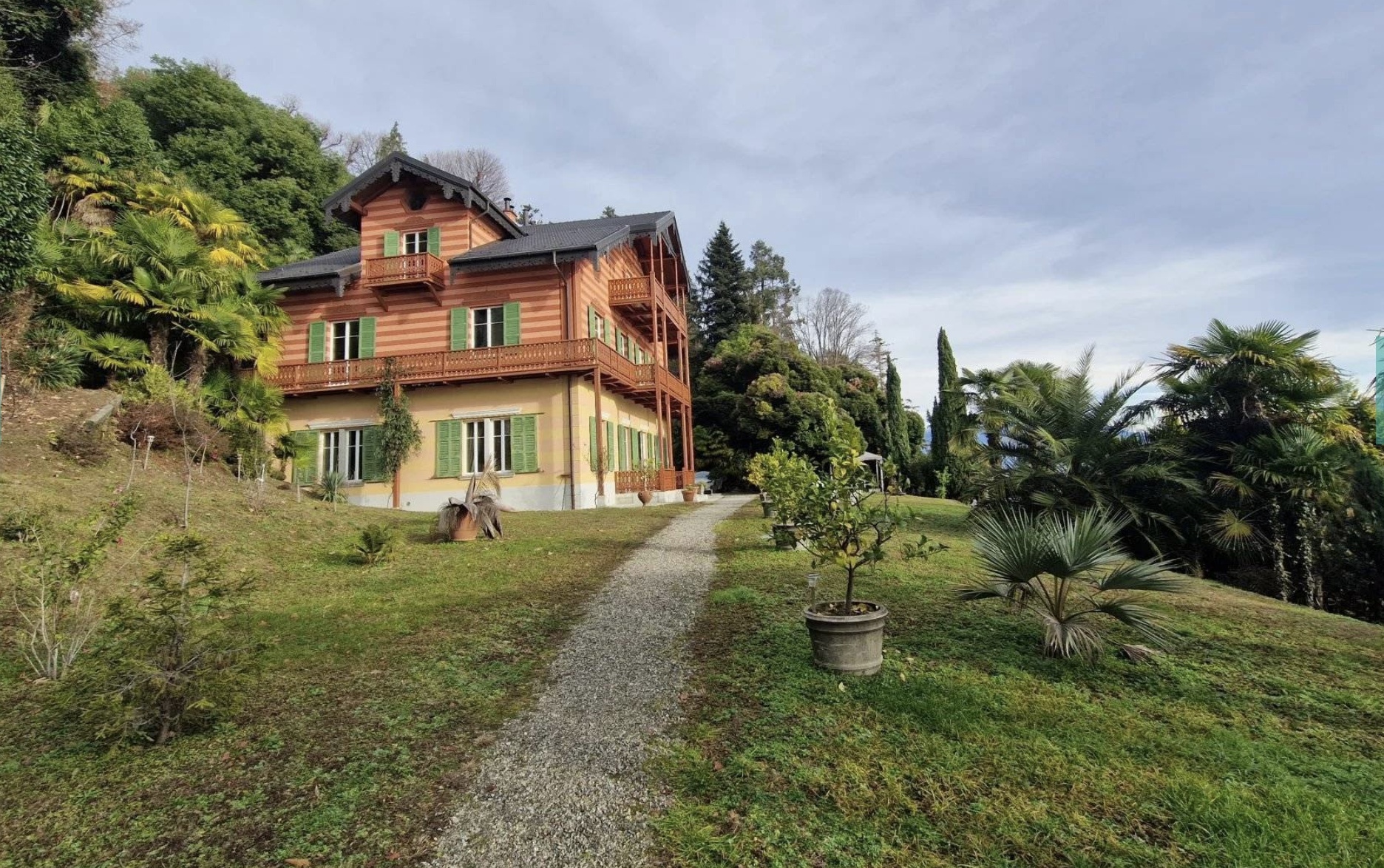 In Ghiffa, in dominanter Lage mit schönem Blick auf den Lago Maggiore, ein Herrenhaus aus dem 19. Die geräumige historische Villa stammt aus der zweiten Hälfte des 19. Jahrhunderts und ist in perfektem Zustand, da sie 2016 komplett renoviert wurde. Die prestigeträchtige Villa ist auf drei Ebenen angeordnet: im Erdgeschoss finden wir eine große Eingangshalle, Wohnzimmer mit Blick auf den See, Esszimmer, Bibliothek, Küche und Bad. In einem separaten Bereich große Waschküche mit Sauna, technische Räume mit Methan-Kessel und Holzkessel. Im Zwischengeschoss zwei Schlafzimmer und Bad mit Dusche. Im ersten Stock gibt es einen großen Flur, ein Hauptschlafzimmer mit eigenem Bad, drei weitere Doppelschlafzimmer und zwei Bäder. Vom Hauptschlafzimmer und dem Atrium hat man Zugang zu einer großen Terrasse mit Blick auf den See. Im zweiten Stockwerk befinden sich drei Doppelschlafzimmer, eine große Garderobe, vier Bäder und zwei kleine Terrassen. Möglichkeit der Wiederherstellung des Dachbodens. Die Etagen sind intern entweder durch eine Treppe oder einen Aufzug miteinander verbunden. Einige Zimmer sind völlig unabhängig und verfügen über eine Kochnische. Diese luxuriöse Villa ist daher das ideale Objekt, entweder als privater Wohnsitz oder für eine B&B-Aktivität zu nutzen. Das Anwesen liegt in einem herrlichen botanischen Park mit jahrhundertealten, hohen Bäumen auf einer Fläche von etwa 23.000 Quadratmetern. Im Inneren des Parks befinden sich die alte Orangerie von 130 Quadratmetern, die ebenfalls renoviert wurde, und ein Gewächshaus von 50 Quadratmetern. Die Orangerie ist mit einer Heizungsanlage mit Holzöfen und einer Küchenzeile ausgestattet, die für Partys genutzt werden kann. Es besteht die Möglichkeit des Zugangs zum Strand, an dem das Anwesen Miteigentumsanteile hat, mit 4 Liegeplätzen im nahe gelegenen Yachthafen.